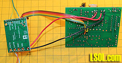 The modification to the circuit is very simple and it is not even necessary to make any changes to the controller or software. Not only will the external H-Bridge work with both versions of the circuit (the TV Remote Control version and the Train Recorder Version), you don't even need to remove the original L298N H-Bridge. All that is needed is a few wires that go between the PICAXE controller and the H-Bridge circuit board.