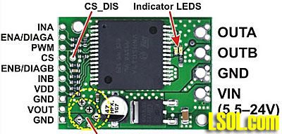 The Pololu VNH5019 Motor Driver Carrier The high power H-Bridge board is based on a chip that is designed for automotive use, the VNH5019A-E. In spite of its small size, the board is about 1" x 1.5" x 0.125", it can handle 12 amps of current continuously without a heat sink. That does not mean that it will not get hot as it can heat up to in excess of 100 degrees C if the current exceeds 12 amps. The board will shut down if the temperature exceeds 150 degrees C. It is also protected from reverse polarity and over voltage.