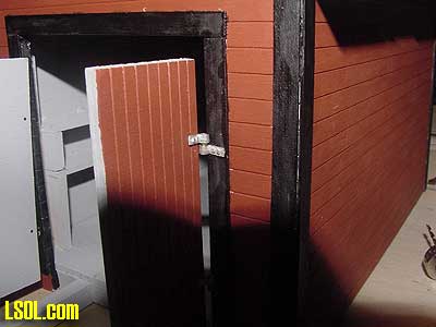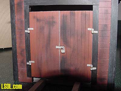 You will note that because I cut the opening in the front of the building higher to accommodate the speeder, the doors are a little short for the opening. I decided that they looked OK this way and didn't attempt to make new longer doors.