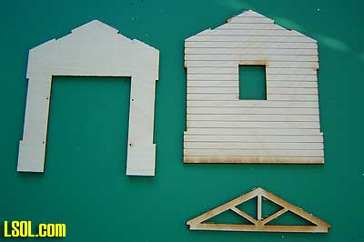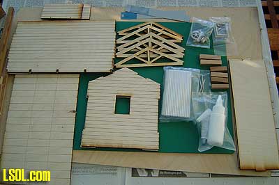 It also includes: corrugated aluminum for the roof, a cast metal window, door hinges, latch and padlock, a small cast "junk" parts and two small pieces of plastic to be used for the roof cap.
