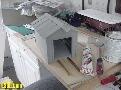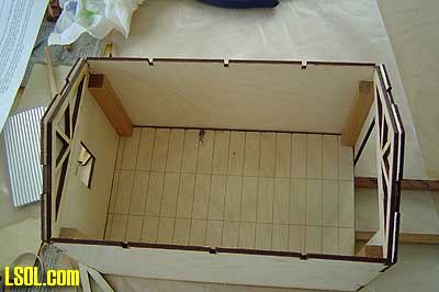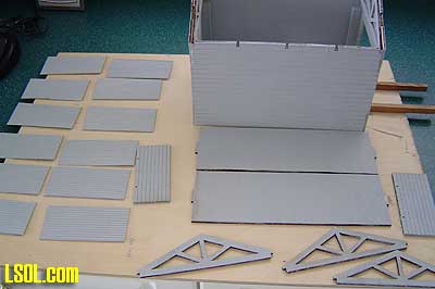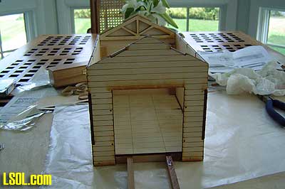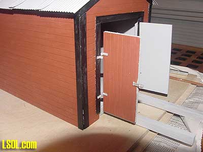 A couple of cuts in the wood stock to make the foundation the correct size are an easy way to solve the problem. The only other problem for me was the roof. This was the first time I had worked with the corrugated aluminum roofing material, and I found it difficult to put into place so that it remained smooth. Finally, the size of the door opening wasn't large enough for the ARISTO speeder, but it was easy to make the opening larger.