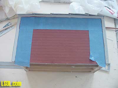 After everything was completely dry, I used some of the blue painters tape to mask the building to do the finish and touch up painting.