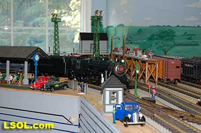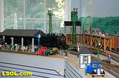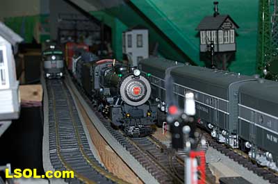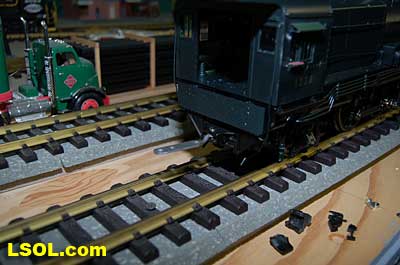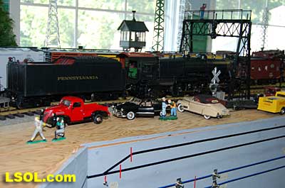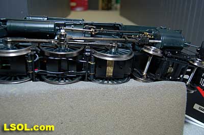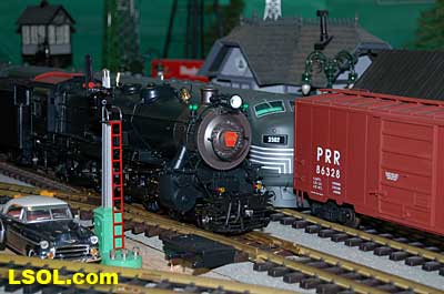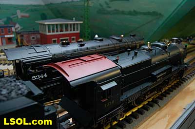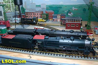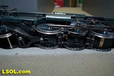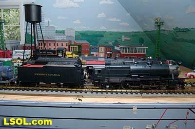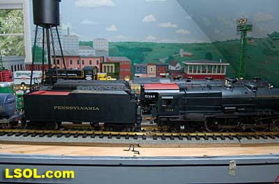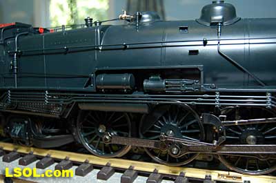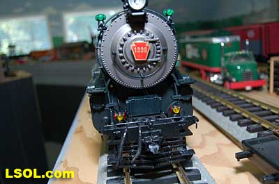 As a New York Central fan, I always viewed the Pennsylvania Railroad as a second place railroad. But the first engine I ever owned was an American Flyer PRR K-4 Pacific that my Dad bought as part of my first train set. He cleaned off the Pennsy lettering and lettered it as a New York Central engine.  It was my favorite engine for many years before I discovered that it was really an engine from the competition. I loved the shape and look of the K-4.  So when I saw the Accurcraft PRR K-4's at the East Coast Large Scale Train Show back in April, I felt that familiar love for an engine that had been such a big part of my childhood. I had to have one. Talking with the Accurcraft people at the show, I discovered that I could order one from a dealer and that it would be out in June. So I ordered one with a Phoenix Sound system. When it arrived, I was not disappointed.  In 1907 the PRR recognized that their current locomotives were not powerful enough to pull the increasingly longer steel car passenger consists, so they purchased a Pacific class, [4-6-2] K-28 from the American Locomotive Company. From that locomotive and after purchasing another ALCO experimental Pacific [class K-29] the PRR developed their own 4-6-2. They refined their design and built their own K-4 class Pacific [number 1737] at their Juniata shops in May of 1914. From then until 1928, the PRR produced a total of 426 class K-4s. These engines were not as powerful as some later designs by the PRR, but they continued to pull passenger trains until the end of steam on the PRR. They were assigned to all of the major first class PRR passenger trains, including the Broadway Limited. They could be seen throughout the system pulling the Tuscan red PRR heavyweight passenger cars and later Tuscan red streamlined passenger cars on the Pennsy until 1957 when the PRR replaced all steam with diesel. The PRR K-4s could be seen running side by side with the NYC Hudsons on the four-track mainlines of both railroads where they ran parallel across northern Indiana and Ohio on their way to and from Chicago during the 1920's to 1940's.  The prototype locomotive and tender was over 84 feet long and was equipped with 80-inch diameter driving wheels. They operated with a boiler pressure of 205 pounds with a grate area of about 70 sq feet. The engine weighed 320,000 pounds and had a tractive force of 44, 500 lbs. The tender had an 11,300-gallon water and 22 ton coal capacity. The Accurcraft K-4s is a beautiful model of the real thing. It is handcrafted from brass, steel and die-cast materials and lives up to the quality that Accurcraft has become known for in its locomotives. This is a fine-scale model with a Pittman DC gear head motor, steel running gear and frame, and excellent cab interior details. The locomotive arrived packed in a large cardboard carton with foam padding. After removing the engine and tender boxes from the large cardboard carton, I opened the familiar red and yellow boxes.   The engine came packed inside a steel frame and fastened to a wooden packing floor. The tender was packed in a foam-padded box.     The wooden base had to be unscrewed from the frame and the plastic wrap and tape that fastened the models to the base had to be cut to free the locomotive and tender from the packaging. Although the packing was designed and approved by UPS, my engine had a broken front coupler and one of the water drainpipes was dislodged from its place on the engine.   I was able to refasten the drainpipe, but the coupler will have to be replaced. Cliff at St Aubins called me to tell me they were sending a replacement coupler after I sent an email explaining the situation. It will be easy to replace.   After removing the models from the packaging, I put the locomotive in my foam cradle and lubricated it and the tender as directed by the instruction booklet packed with the models. Accurcraft recommends that all of the moving parts on the locomotive and tender be lubricated before attempting to operate it. They also explain that the main gearbox has been lubricated at the factory and that all parts should be lubricated every 25 hours of running time. You can get a good idea of the underbody details from the photos.    The Walschaert valve gear with D slide valves is very well done.    The trailing truck and firebox are accurately produced.   The model locomotive is 22 inches long, 6 3/4 inches high and 4 3/8 inches wide. The tender is 14 3/4 inches long, 5 7/16 inches high and 4 1/4 inches wide. The two combined are almost 39 inches over the couplers. These translate to the accurate dimension in 1/29 scale. The locomotive weighs in at 19 pounds and the tender at 7 pounds. This locomotive will run on 4-foot radius curves, according to the manufacturer. I found that it handles 8-foot radius and LGB 16000 switches very well. Accucraft warns that you need at least a 3-inch clearance for locomotive overhang on curves. Comparing this loco with the USA Trains NYC Hudsons, I found the Hudsons to be 1-2 inches longer locomotives and the tenders to be a little more than 2 inches longer than the Pacific's tender.       The K4s is offered in pre and Post WWII versions. The major difference that I could see in the two different models is in the pilot. The post-WWII version has a drop coupler and a cast pilot. This pre-war engine has a slatted pilot and is numbered 1339, which is prototypical. The locomotive was completed by the Juniata shops in May 1919 and had the construction number 3474. In September 1954 it was assigned to the Pittsburgh Division of the Pennsylvania Railroad, so that it would have been an easy move for it to my Big Four NYC in that year. It retained the number 1339 throughout its life; which ended when it was scrapped in February 1956.  The pilot has all of the details found on the prototype and the front markers are excellent. The headlight is a very bright white LED.  Viewing the front of the engine, it appeared the Pennsy keystone was s