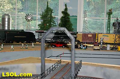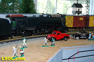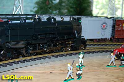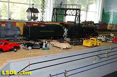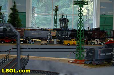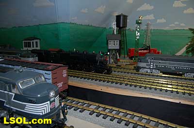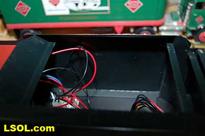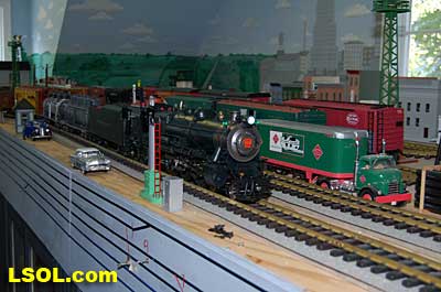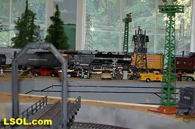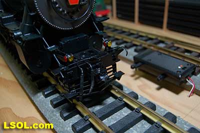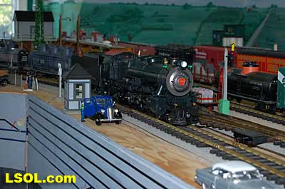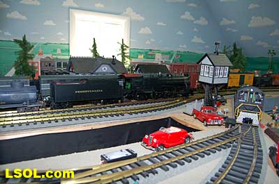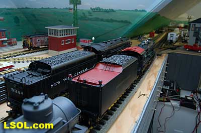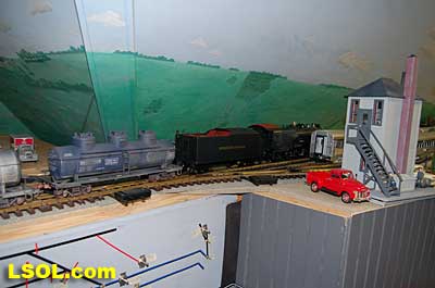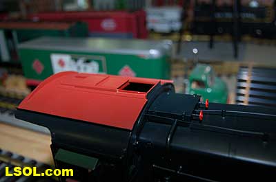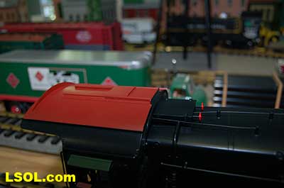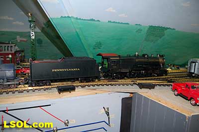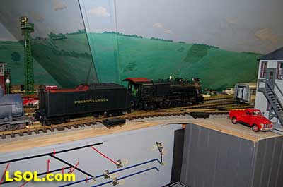 The water tank door conceals the controls for the sound system.  Removing the coal load provides access to the space inside the tender where the Phoenix sound system resides. There is plenty of space inside the tender for several electronic systems.   Since I had no Tuscan red passenger cars, I decided to allow the Pacific to pull some NYC freight on my railroad. It looks pretty good from all angles.                           The Accucraft K4s Pacific locomotive is a beautiful steam model. The cab interior details, operating windows, detailed fittings, domes pipes and handrails and rods, gears and crossheads make it a fine scale model. The Phoenix sound system appears to be very accurate in its fidelity to the real thing. I recommend the model to anyone who is interested in steam engines found on the PRR from the early to mid 1900's. It is a great runner and beautiful to look at and hear. The price with sound is a little over $1800, making it a real bargain for the price.              Top of Page