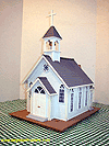 | We have seen many a Garden Railroad. A a few hundred to say the least. Most have a main street with a saloon, sheriff's office, and a blacksmith or two. One thing that is missing on many a railroad is a church. Where do the people get married, where do they get buried? Remember in Heb 10:25 KJV it says, Not forsaking the assembling of ourselves together, as the manner of some is; but exhorting one another: and so much the more, as ye see the day approaching. It's time to let the little folks do some assembling on your railroad. Best of all! No real assembly from you is required. |