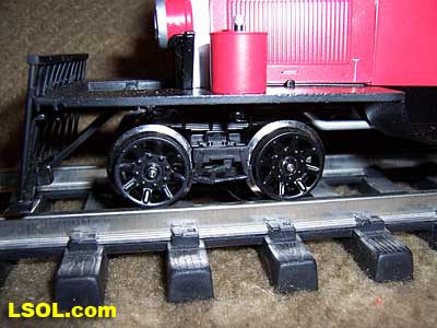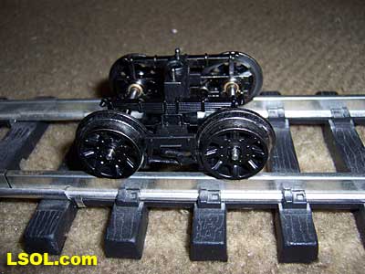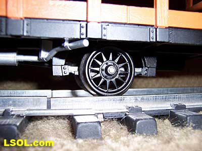 Front truck detail is crisp and appears to be an accurate representation of the prototype's truck. Inside hung brake shoes add to the fine detail. A word of caution. The brake shoes set very close to the wheels.