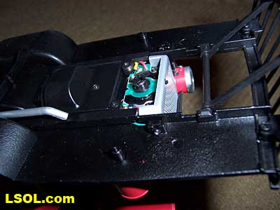 Another nice touch is the fact that the axle runs in small caged ball bearings. There is a ball bearing at each axle end. The rear axle turns with a minimum of friction due to these ball bearings. Note: Should you open the differential make certain the bearings are placed in the axle housing recesses when putting the two differential halves back together. A note about the automotive type universal joints. These universal joints are made of a tough flexible type plastic. They appear up to the task of transmitting power to the rear axle.