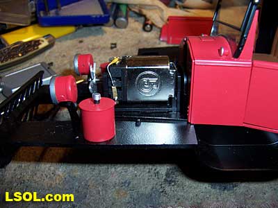 As previously mentioned the motor to power the truck is located under the hood. The motor is covered by a plastic casting that represents a six cylinder OHV Buick engine of the late 1920 period. This plastic motor cover snaps in place over the can motor. Supplied documentation explains procedure for removing the Buick motor cover to access the can motor.