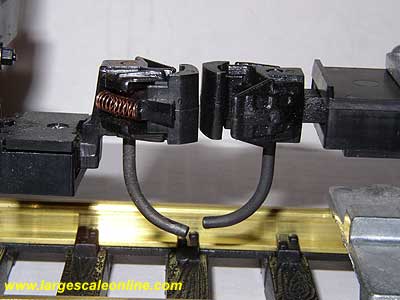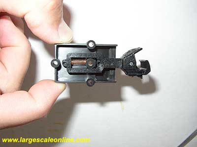 You will install the center spring in the coupler slot. This is hard in HO scale, but easy in G Scale. You might use a screwdriver or tweezer to help.