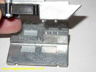 You now secure the coupler gear box to the upper section of the Kadee Height Gauge. Just align the pegs to the holes and secure the bolt and nut.
