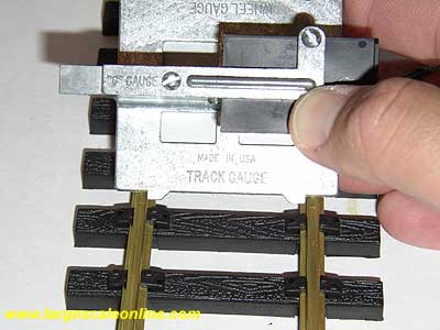 To use as a track width gauge, place the gauge on its side in between the rails. You can check your rolling stock wheelsets. If the wheels pass through the slots freely you are OK. If they hit on the inside or the outside of slots the width of the wheelset will need to be corrected.