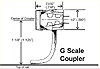 | The "G" scale couplers are 1:24 scale and are designed to be mounted at 1 1/8" (1.125") above the rail. This is just slightly higher than the G scale "narrow gauge coupler height of 1 5/64" above the rail. The way Kadee determines this is based on narrow gauge being of standard gauge. The standard G scale coupler height is 1 7/26" (1.4375".) Divide this by (or x .75) equals 1.078" |