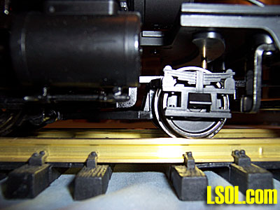 | Kirke, I guess I didn't make it clear in the review. Check the last paragraph on page 14. There it's mentioned that electrical pickup is through small rollers that run against the back of each driver. The paragraph goes on to state that the rear truck has electrical pickup. Guess I should have stated that there are eight electrical pickup points on the Forney. The electrical pickups on the rear truck are some of the most positive I've seen. A very innovative piece of engineering. As a side note. Bachmann 0-4-0 locomotives, all versions, have electrical pickup on the backside of each driver. In no case is any electrical pickup transmitted through the valve gear. |
