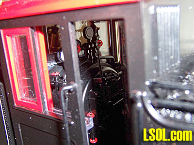 The engine has an all weather cab with working doors. The doors may be placed in the closed position, or since they are spring loaded the doors may be opened. The rear cab side windows slide forward.
