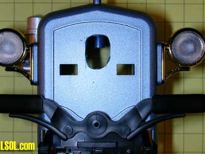 Glue the IR detector to the radiator, bend the leads at a 90 degree angle and reattach it to the frame. The three leads from the detector should protrude into the inside of the body as below.
