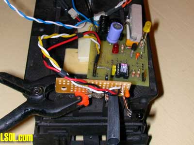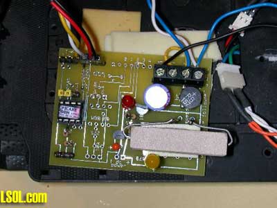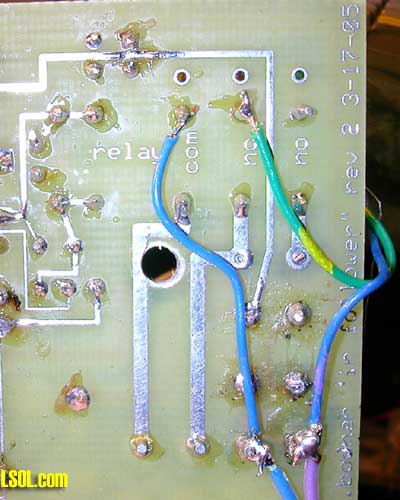 In the close up of the circuit board below the 20 ohm resistor that slows the motor is the rectangular object in the lower right corner. The relay is under it.