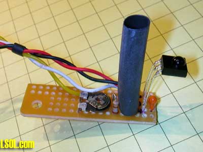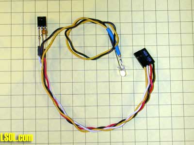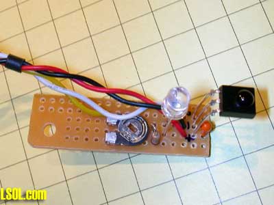 Connect the three wires from the IR detector and the one where the resistors meet to a length of four conductor wire that is long enough to reach to the truck's bed where the circuit board will be placed. I used an old piece of computer ribbon cable for this connection.