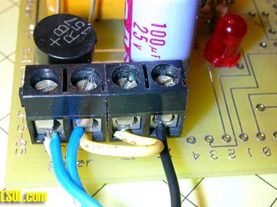 Cut one of the wires to the motor, as we did on the Eggliner's circuit board, and connect the two ends to the motor connections on the connection block.