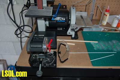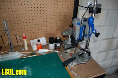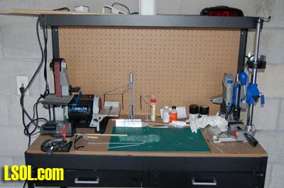 The Internet provided me with a very interesting site about all kinds of poles. Neal McLain created the site called ?Utility Poles? which provides a great amount of information including definitions, measurements and history about utility poles. It even contains a section on railroad poles and explains that they provided electric power, signaling and communications for the railroad. From this site I found out that all of the circuits on the railroad poles are open wire, implemented with un-insulated wire. I also discovered that poles come with up to seven crossarms along railroad right-of-ways. - See the details here. Because I spend the winter in Florida away from my railroads, I need a few Large Scale projects to keep me occupied while I am down here. For the past several years, I have worked on these projects using the island bar between the kitchen and dinning room for my work area. This has worked well for me in the past because it allows me to remain in the same area as my wife, Ann, and lets me view the ocean while I work. It has caused some discussion with Ann as to the appropriateness of my doing this kind of work when we have guests coming for a meal or a visit. These discussions led me to purchase a workbench and set up a workshop in one of our garages this year. Since there is a new Lowes across the street, it was easy for me to find all of the things I needed for this shop. Over the past several years I had accumulated a second set of most of the tools that I needed for my railroad projects, so I only needed a few more to complete the shop.