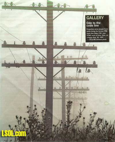 Recently I was looking through some of the model railroading magazines and noticed that some of the really realistic railroads featured in the magazines usually had detailed modeling of the stuff you find along the right-of-way. One of the things that seemed neglected on many Large Scale railroad is the modeling of utility poles. Since I had also neglected them on my railroad, I decided that I needed to add some poles for my mainline on my indoor and outdoor railroads. After looking at what was available commercially, I decided to make my own. Whenever I start a project, one of the first things I do is research the railroad books in my collection to find anything on whatever I am planning to build. I also check out the Internet to see what I can find there about the project. My books gave me some interesting pictures of utility poles along the railroads. I also found some really good pictures of utility poles along the New York Central in the calendars published by the New York Central System Historical Society. These pictures are from the 2006 and 2008 calendars and you can see that there are many poles along the right-of-way. Notice the variety of heights, number and size of crossarms and number of lines per pole. Note that one photo even has metal poles.
