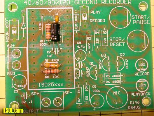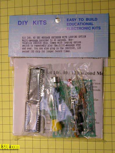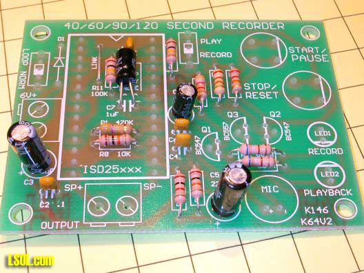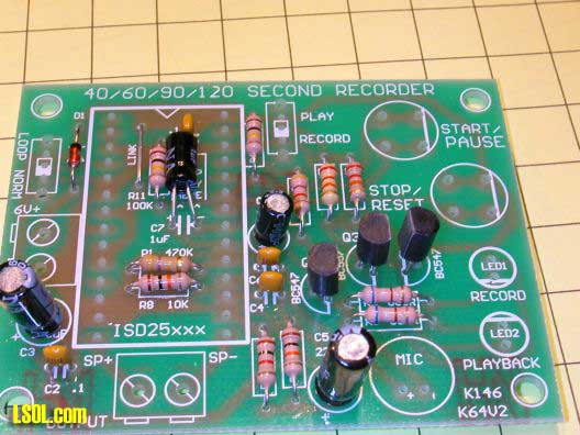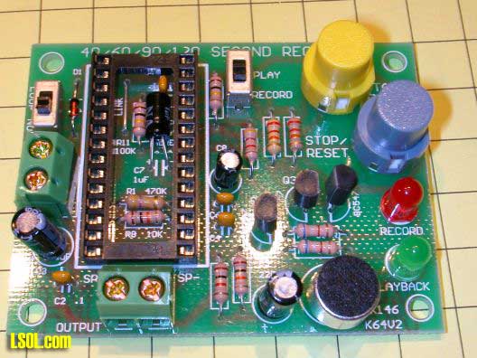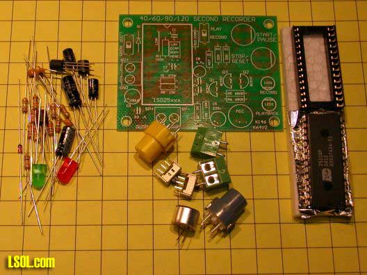 Qkits offers two different versions of this board, one that records up to 120 seconds (qk146b - $28.95) and one that records for up to 40 seconds (qk146 - $18.95). You can also order just the sound recording chip from Jameco.com. Since the IC used in the kit is in a socket and supports 40, 60, 90 and 120 second chips you could easily change chips as your needs change.