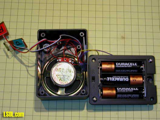 The first thing you may want to do with this module is replace the small speaker with a larger one. I have experimented with a number of speakers from my junk box and have had good luck with all of the ones that have an 8 ohm impedance. This is the most common value for small speakers and most have their impedance marked on them. Although the audio output from this board is not extremely high, the volume increases a great deal when a 3 or 4 inch speaker is attached. This may be sufficient for some applications.