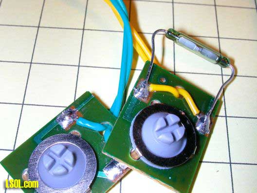 The playback switch can be pressed to activate the sound or a magnet can be used to activate the sound by way of the reed switch that is soldered to the side of the playback switch.