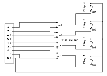 The wiring for the switches is shown here. One wire from each switch is connected to the common connection. The other wire goes to one of the numbered terminals. There is no need to use all of the switch connections if your application doesn't need them.