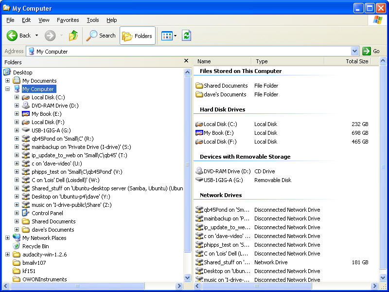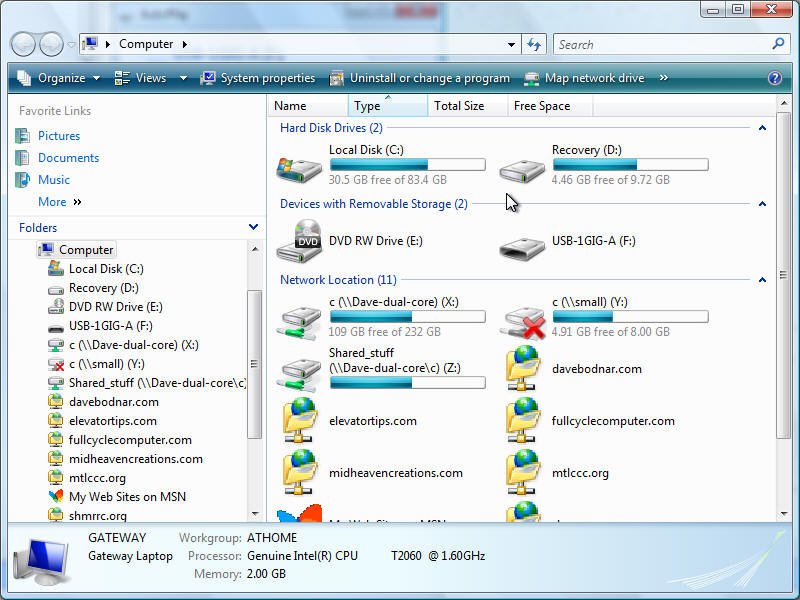 You should see a window something like the one below - this one is from Windows Vista. The USB memory stick is drive F: