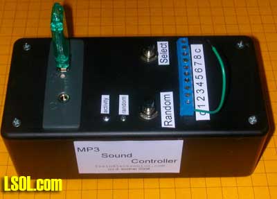 As the controller is initially configured switches 1-6 are set to be non-random and switches 7 and 8 are set to choose random sounds. You will recall that this means that activating switch #1 will play sound file 1.mp3, activating #2 will play file 2.mp3 and so on. Activating switch #7 will have a randomly chosen file in the range 70.mp3 through 79.mp3 played and activating #8 will play something from 80.mp3 through 89.mp3.