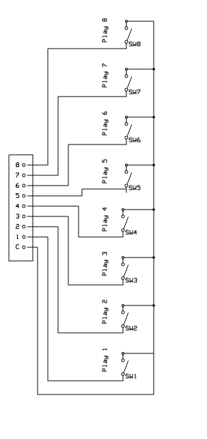 In the wiring diagram above each switch plays a sound or range of sounds. It is also possible to add one or more toggle switches so that other sound options become available.