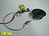 Click for larger picture | Along with our 2K2 set we received both a 2.5" and 3" speaker for sound. Many engines now come with a speaker preinstalled. Some make a nice sound, but the bigger the speaker the better. |  Click for larger picture | The kit comes with reed switches that can be installed on your locomotive to trigger actions. Actions such as blowing the horn or ringing the bell. On a steam engine you can use them to activate the chuff sound. The reed switches are triggered by placement of a magnet on the track, or one placed on the rotating axle for the steam chuff sound. |  Click for larger picture | The sound volume on the board is controlled by a switch. This switch is a three-way momentary switch. The middle position is off and the switch is held in either direction to adjust the volume. Hold the switch until you get the volume level you want then release it. |  Click for larger picture | The battery included is attached to the board by a keyed plug. Until the battery is charged you will not get sound until the supply reaches about 6 volts. Also, since the board runs off battery below 6 volts, you will not get idle sounds or adjust the volume. With a charged battery, the 2K2 will play idle sounds for about 20 seconds after power is shut down. |