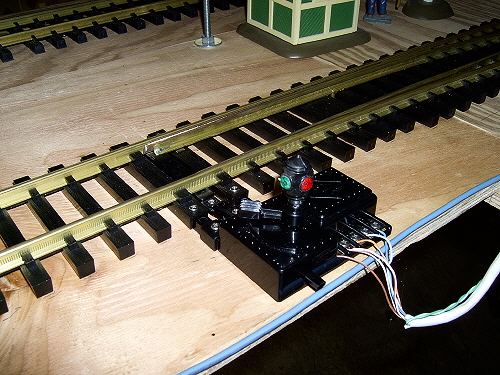 Sometimes a different length attaching link to a turnout is helpful for proper operation of the points at both positions. Here are some pictures of that same #6 turnout that required a custom made, slightly longer throw bar link before I added the push - pull second turnout motor: