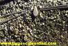 I used a level to keep the top edges aligned as I went. Click for larger picture I was also concerned with the possibility of weeds growing up through my tracks. I did not want to be pulling weeds out of the track all the time, with the possibility of removing ballast at the same time, instead of running trains. I thought of sterilizing the soil under the track, but all the chemicals indicated that they might be detrimental to plants I wanted in the vicinity of the track, so that was out of the question. I then "discovered" a fabric that is intended to keep weeds from growing through it while letting water trough in the other direction. What a great idea!My ballast would be crushed granite (#5 roofing gravel) from a local decorative stone supplier. It comes in 80 pound bags, much like cement products. When I started thinking of how many bags I was going to have to haul to build my railroad, I got tired. I thought I could cut down the number by making the ditch shallower. However, since the edging comes 4" wide I would have to cut it and that would not be an easy chore either since the stuff is made to be indestructible. I also found that when I started digging my ditch I had a lot of rocks which caused the bottom to be uneven and not so firm by the time I got finished dealing with them.