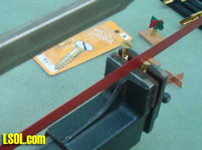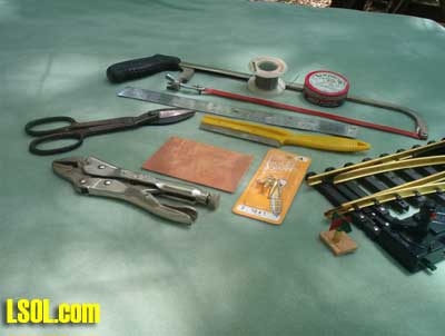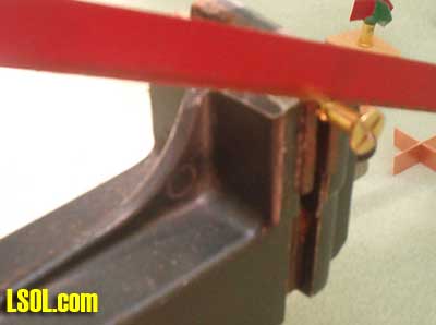 Our project for this "How to" article, is going to be making a target indicator, which will have two blades, mounted on a brass post, that will slip into the hole that holds the lantern provided in the Aristo manual right and left hand switches.