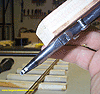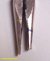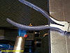 The pictures above shows the difference between stock and modified handles. The screws are placed so that the pliers can slide back and forth on the plywood just enough to open and close the tip to about 1/8th of an inch.