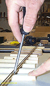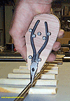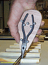 | The pliers are loosely held onto a 3/4" plywood body with #8 square drive round head screws. This allows the pliers to slide up and down without falling off the ply. |