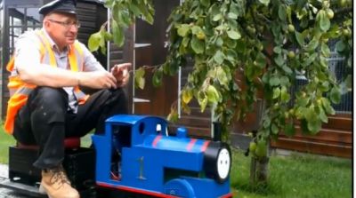 The married-grandad-of-four has spent thousands of pounds on tracks, a steam locomotive and two electronic engines and even has a rail replacement service on standby for emergencies - a two foot replica bus bought for him by his grandchildren. |