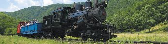 The Durbin Rocket Excursion Train is a ten mile, two-hour ride that leaves from Durbin and goes deep into the Monongahela National Forest on its scenic run along the Greenbrier River.