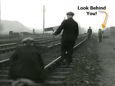 My only concern is the guy that is supposed to be the lookout may be more interested in getting his 15 minutes of getting his face on camera than looking behind him. Trains run both ways, right?